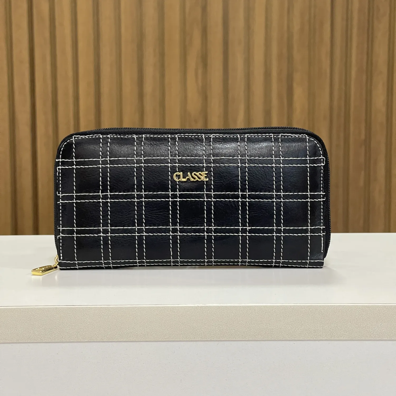 A Carteira Feminina CLASSE Xadrez é o acessório perfeito para a mulher moderna que busca sofisticação e funcionalidade. Confeccionada em couro legítimo de alta qualidade, ela apresenta um elegante padrão xadrez com costura branca contrastante e o logo CLASSE em dourado, detalhes que conferem um toque de exclusividade. Seu design compacto e inteligente oferece amplo espaço interno para organizar seus cartões, dinheiro e documentos, enquanto seu acabamento refinado garante durabilidade e estilo. Ideal para complementar looks de verão, do casual ao mais sofisticado, mantendo seus itens essenciais sempre à mão com muita elegância.