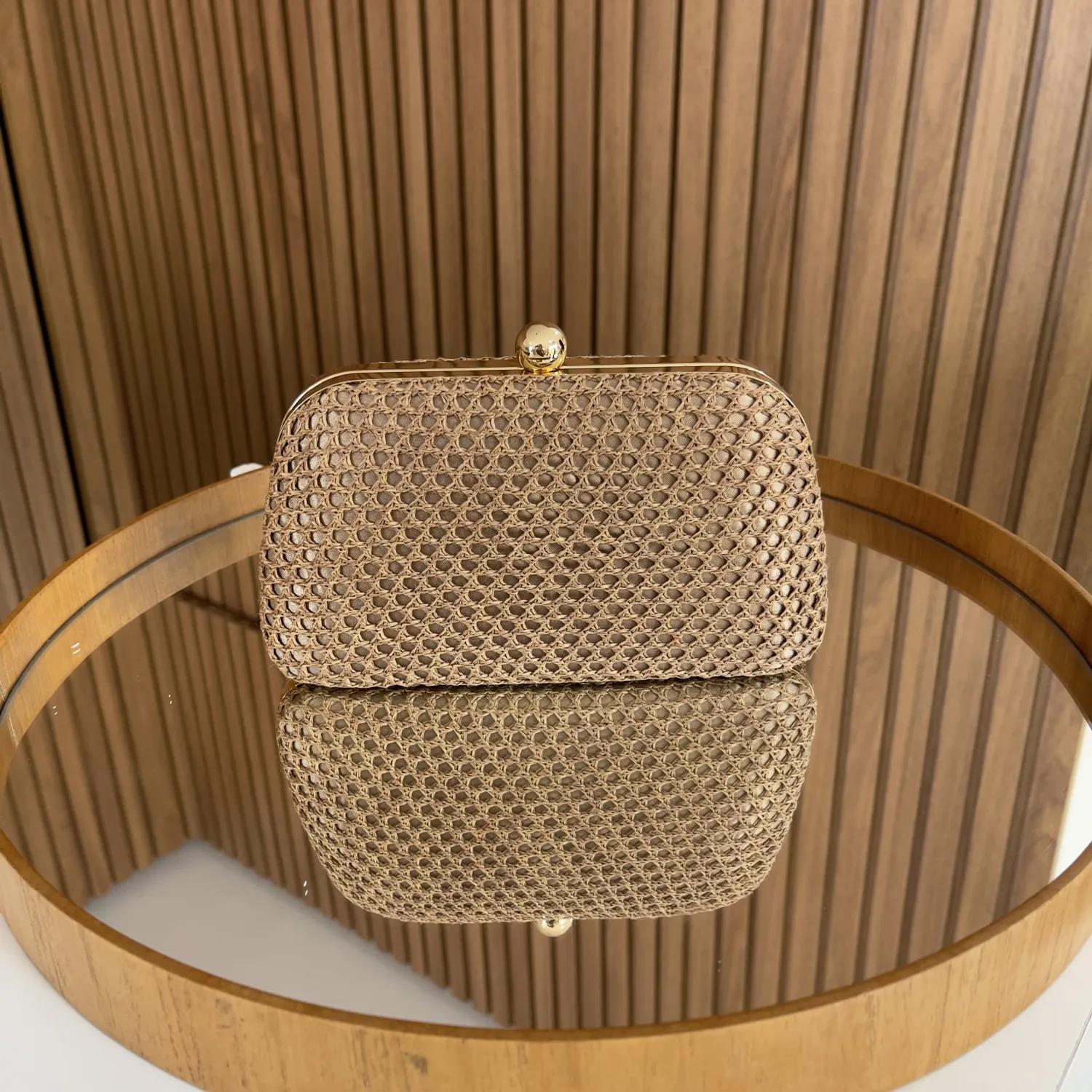 Delicada e sofisticada, esta clutch nude em trama texturizada é a escolha ideal para quem busca um acessório elegante e atemporal. Seu acabamento neutro e refinado harmoniza facilmente com produções de festa, eventos especiais e ocasiões elegantes.